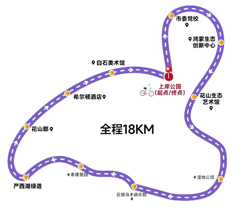 本次騎行路線以花山河上岸公園為起終點,全長約18公里。途經鴻蒙生態(tài)創(chuàng)新中心,騎友們感受到的是科技與創(chuàng)新賦予城市的澎湃動能;在花山生態(tài)藝術館附近,建筑的藝術感與環(huán)境的靜謐相得益彰;進入嚴西湖綠道段,湖風拂面,水鳥翩躚,開闊的湖景則是對湖北聯投堅持生態(tài)優(yōu)先、綠色發(fā)展,累計完成超千億投資進行生態(tài)修復與綠色建設的最佳注解。這條路線,讓參與者在有氧運動中,深度閱讀了花山作為“新型城鎮(zhèn)化湖北樣本”的規(guī)劃之美、產業(yè)之新與生態(tài)之優(yōu)。