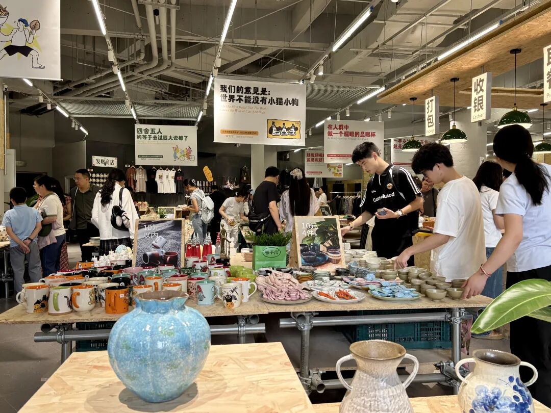 在等于幾(撿瓷)市集,從馬克杯、碗碟等日常器皿到手鏈、冰箱貼等精巧飾品,各式各樣的陶瓷琳瑯滿目。市民張女士沉浸其中,感受著“撿瓷”的獨(dú)特趣味:“手工藝品即使器型相同,細(xì)節(jié)處也總有獨(dú)屬于自己的印記。在這里哪怕挑上一小時(shí),也不覺得浪費(fèi)時(shí)間。”
