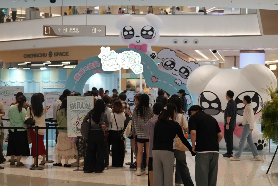 一樓中庭,“這狗”IP全國首展門前大排長龍,店內(nèi)人流如織,各式文創(chuàng)產(chǎn)品吸引消費(fèi)者駐足。不少年輕人簇?fù)碓诰扌汀斑@狗”玩偶旁合影,伸手摸摸它的腦袋,瞬間被這份可愛治愈。與此同時(shí),室外的迪卡儂運(yùn)動(dòng)能量場(chǎng)也變身為開放式運(yùn)動(dòng)會(huì),射箭、高爾夫等數(shù)十種體驗(yàn)項(xiàng)目引得市民躍躍欲試。